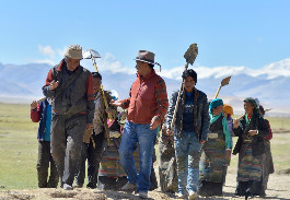 西藏日喀则市定日县夏堆村村民通过人工引水给夏让湿地补水(5月17日摄)。 在珠...