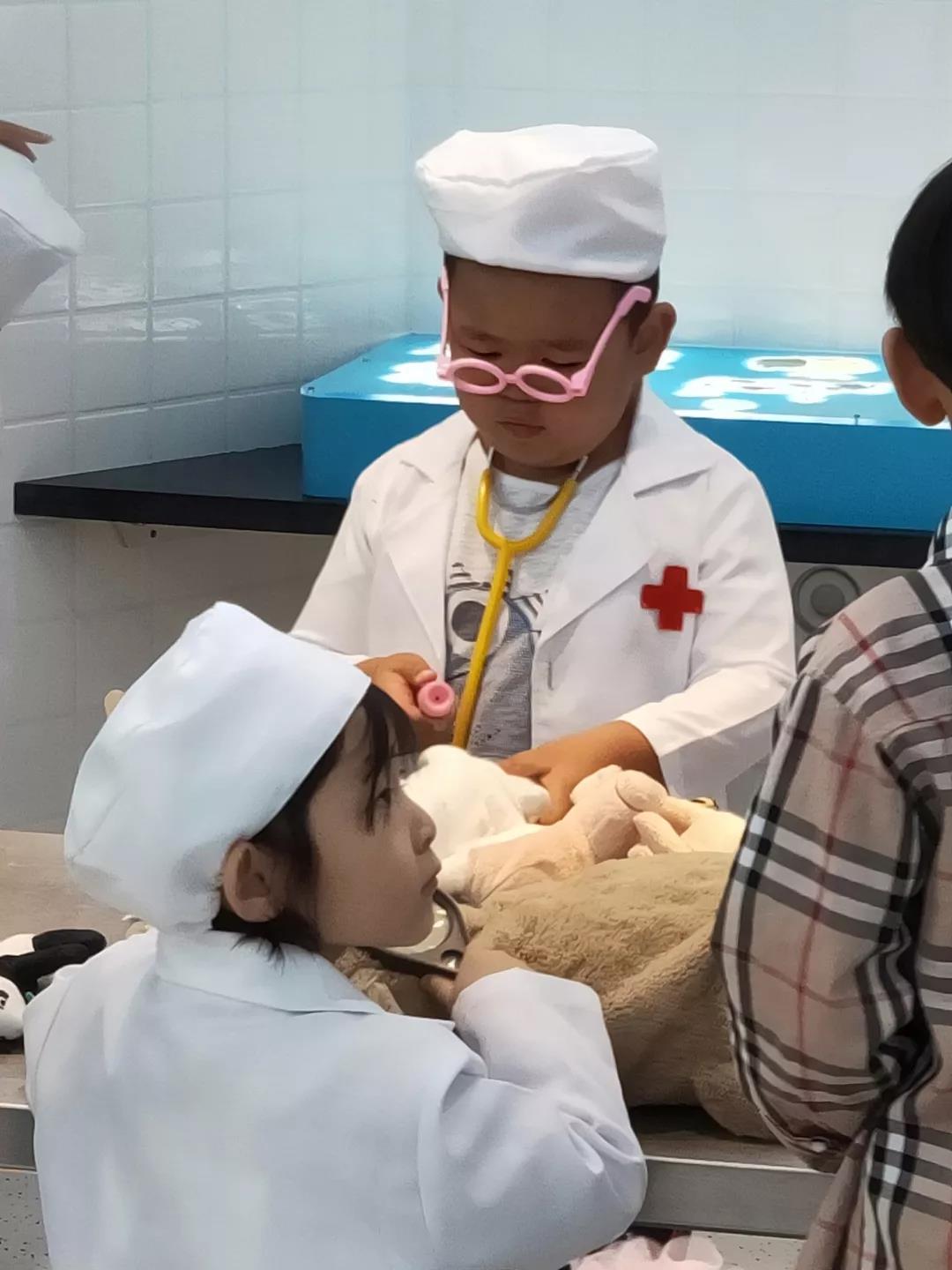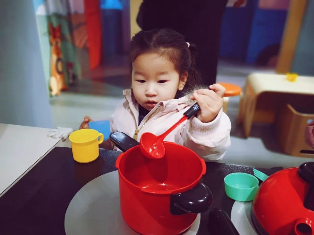 馆内秩序井然,环境整洁,色彩鲜艳的布景极大地吸引着前来参观的人们,跟随着馆内工作人员的指引和介绍,我们终于见到了庐山真容。映入眼帘的都是小小仿真实景,孩子们嬉笑奔跑声不绝于耳,足以见得孩子们是有多喜欢这样的一座博物馆。里面设有宠物医院、迷你超市、尔利奶奶的厨房、建筑工地、消防站等等,都是匹配7岁以下孩子的身高设计的。在每一个展项中,孩子们可以自由选择不同的服装,转换角色,参与其中。通过角色的扮演,可以让孩子们在体验中找到参与社会活动的乐趣,不拘泥于老师的讲和家长的说。另外,我认为最重要的一点是,通过触碰,孩子们对各种职业有了更早期的认识,培养了孩子们的早期职业向往和能力。比如,我的孩子每次生病去医院看病,她对医生这个职业已经相当熟悉,甚至对护士输液的手法都很清楚,但仅限于“眼见”,这次去到了“老牛馆”的宠物医院,里面有医生穿的白大褂,还有听诊器等模拟小道具,当孩子真正穿上衣服,把听诊器戴到耳朵上去给玩具小狗听诊看病时,她才真正了解了医生的工作,真实的体验到这个职业。毕竟还是4岁的孩子,可能还没有更深的理解,但至少她的认知不再停留在“眼见”这个阶段,真是印证了古人说的“眼过千遍不如手过一遍”。