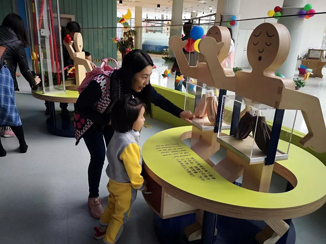 这是一个可以触碰的博物馆。不同于传统博物馆的参观,在这里我伸手触碰到的不是冰凉的玻璃,而是一个个真实的场景、一个个新奇的世界。进门后穿过大厅,首先映入眼帘的是宏伟的“建筑工地”,在这里小朋友们穿上工装将一块块石头从卡车上搬下来,用小推车运到工地;也有小朋友爬上高高的建筑,感受着正在施工的建筑独特的魅力。继续往前走,看到的是火车站,这里同样热闹,小朋友们有模有样地将这里运转了起来:有认真的售票员,有排队买票的乘客,有严格的检票员,还有小朋友穿上制服变成了列车长,有的则坐好,扮演文明的小乘客。顺着蜿蜒的走廊来到另一片奇妙的地方,在这里孩子们可以钻进身体的内部,去了解平常看不到的身体构造,直观的感受身体各部分是如何工作的。在这里我们可以真切的听到自己的心跳声,感受心率的变化;可以看到我们的肺是怎样工作的,以及健康的肺和吸烟人的肺有什么区别;也可以看到耳朵接收到声音后振幅的高低;转动手柄,通过观看绳子的长度来感受肠子的长度等。