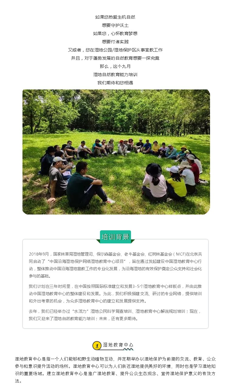 湿地自然教育能力培训开放报名啦!25个免费席位等你来拿~