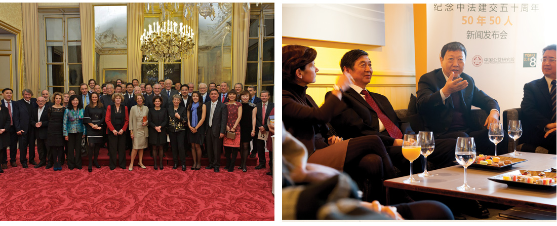 由法国前总理拉法兰和中国前驻法大使吴建民发起,由牛根生先生(老牛基金会)、汪潮涌先生(个人或企业)、夏华女士(个人或企业)、王琳达女士(北京怡海公益基金会)各捐资200万元,设立“中法文化艺术研究中心”,并支持“中法建交50周年”系列活动。